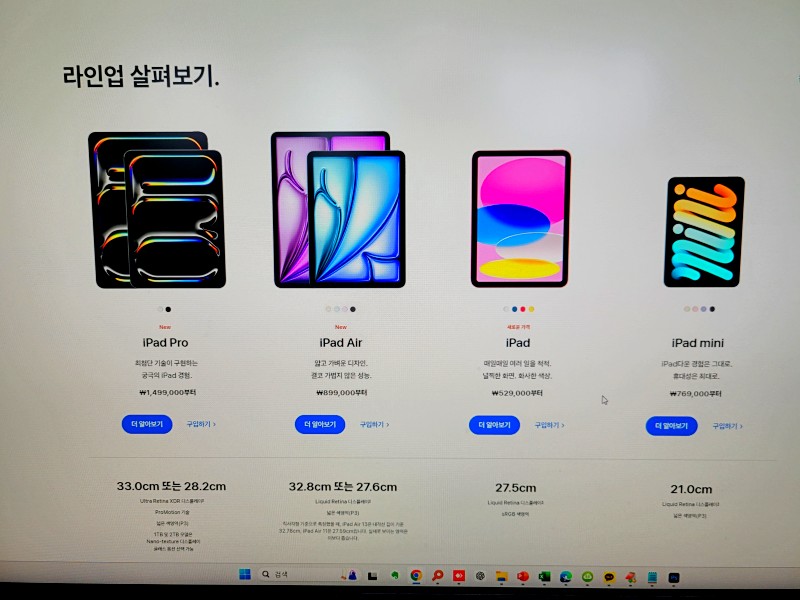 - 11인치 모델: 128GB 899,000원, 256GB 1,049,000원, 512GB 1,349,000원, 1TB 1,649,000원