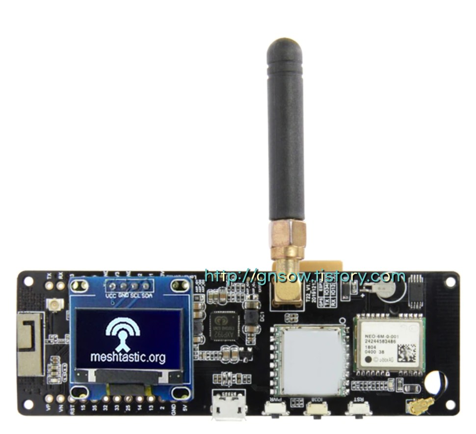 제품을 검색해보니 ‘TTGO Meshtastic T-Beam V1.1 ESP32 433/868/915/923 Mhz WiFi BLE Lora ESP32 GPS NEO B36A’입니다. ' 하드웨어 제품으로 3.3V~5v 사이 건전지로 동작하는 제품이라 구동도 간편합니다.