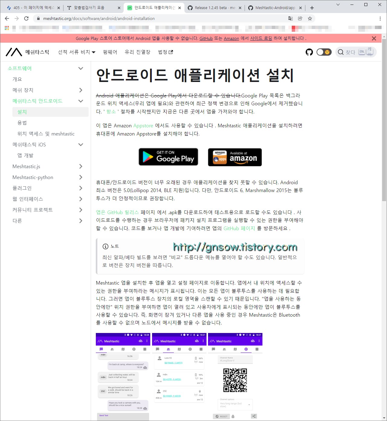 안드로이드, 아이폰 Meshtastic이라는 각각 다른 앱을 사용하는는데요. 구글 스토어에 올라와 있지않으니 사이트에서 파일은 따로 받아서 설치하면 됩니다.